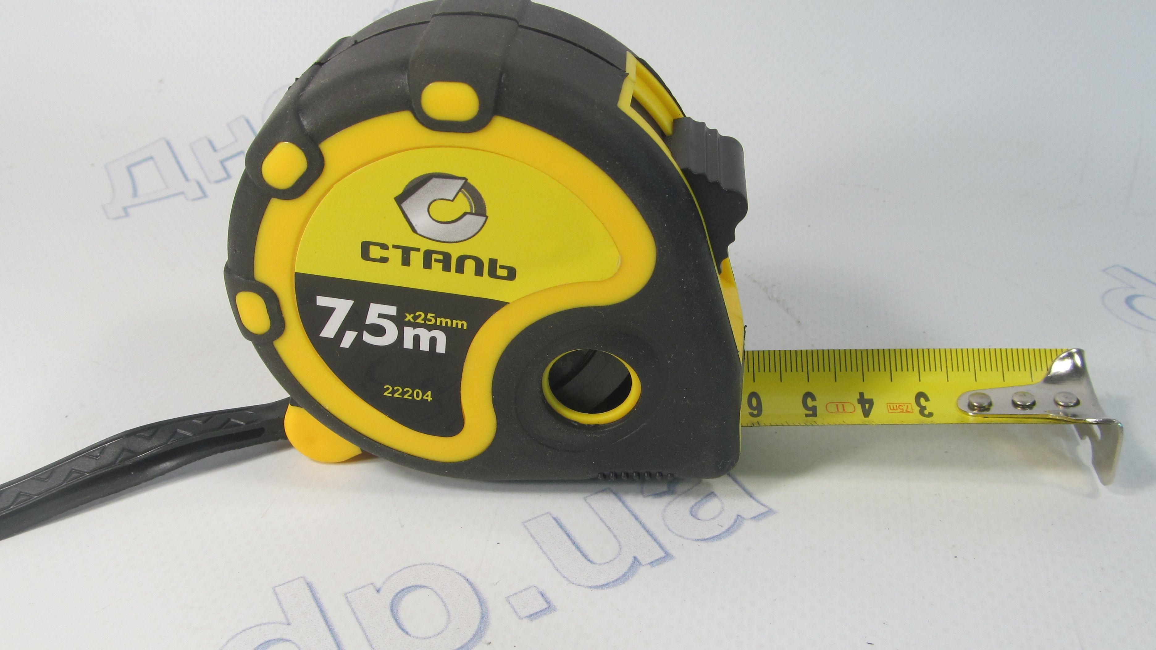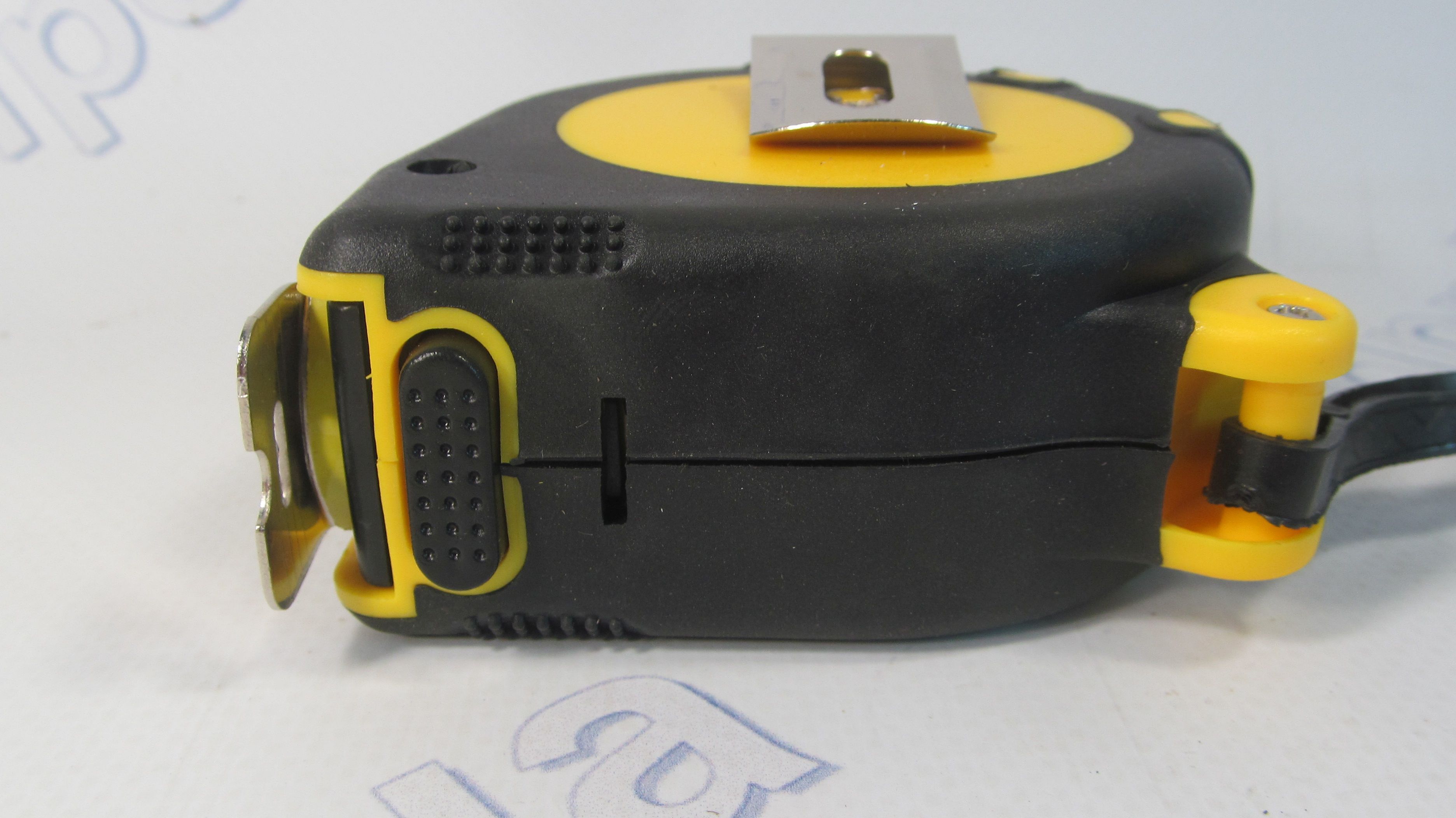 Рулетка представляет собой металлическую ленту с нанесёнными большими делениями (сантиметры), которая намотана на катушку, заключённую в эргономичный прорезиненный корпус, который менее податлив к поломке при падении даже со значительной высоты.